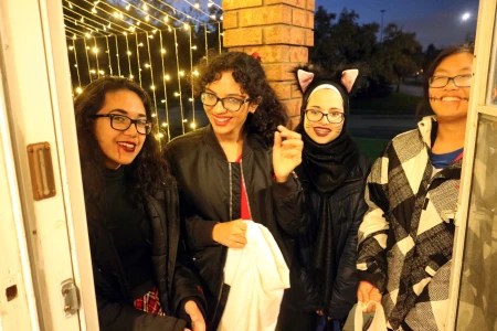 Trick-or-treating is a customary celebration for children on Halloween. Children go out in costume from house to house, asking for treats such as candy or sometimes money, with the question, Trick or treat? The word Trick refers to threat to perform mischief on the homeowners or their property if no Treat is given.