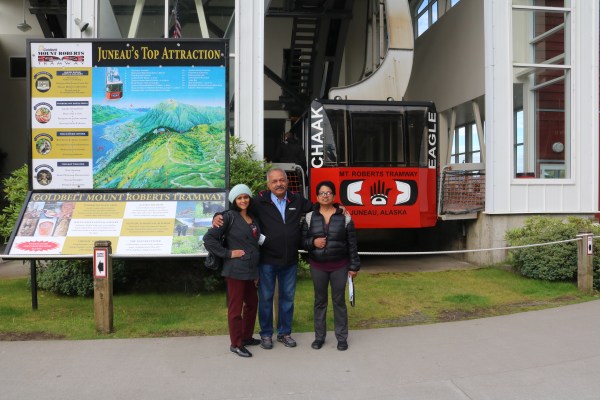 Back at Juneau, we drove on Goldbelt Mount Roberts Tramway, a five-minute ride through the rain forest, from the cruise ship pier to the Mount Roberts at an elevation of 600 meter. It offered a breathtaking view of the cruise ships, the port and downtown Juneau as depicted in the images at the top. Mount Roberts Tramway is one of the most vertical tramways in the world.