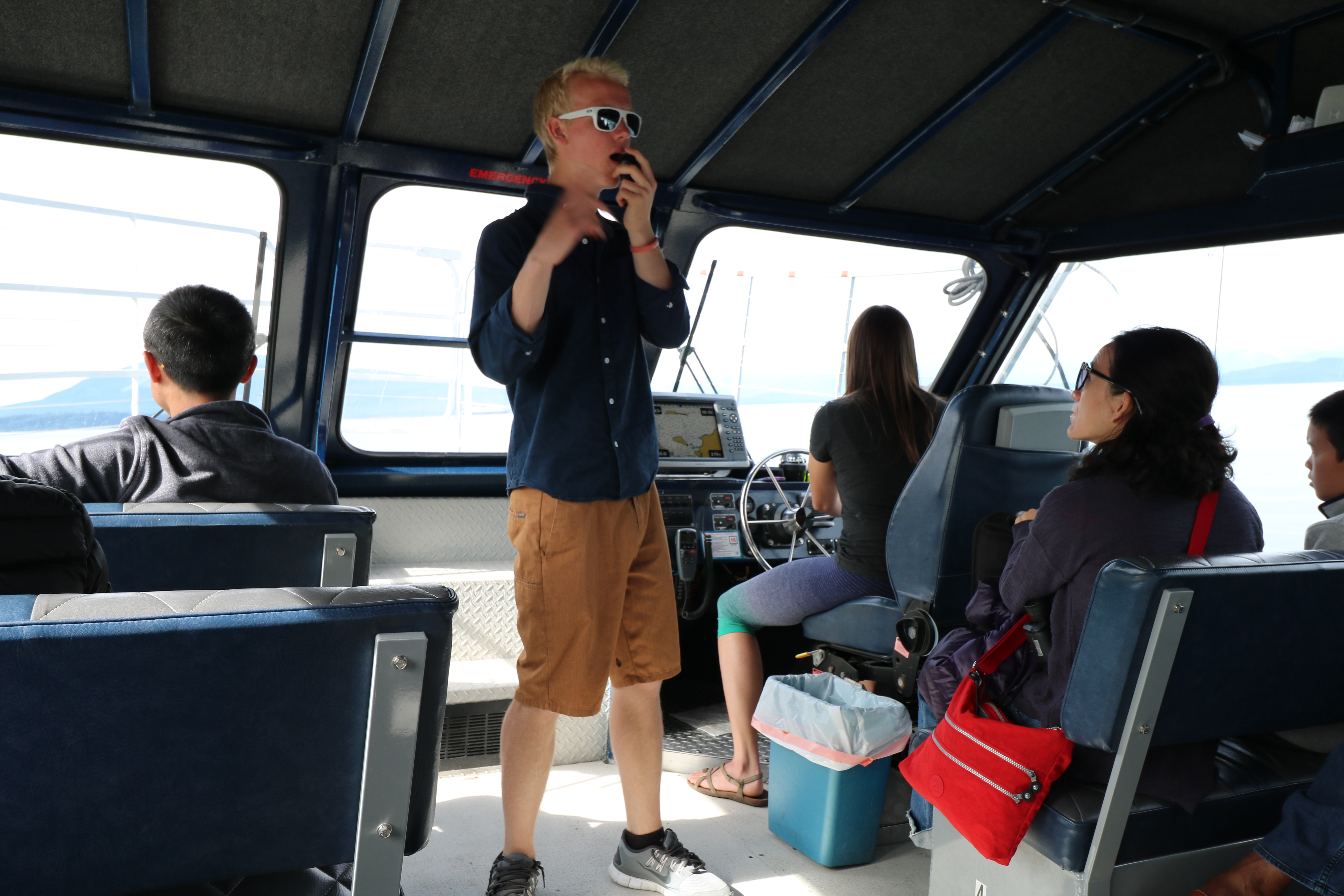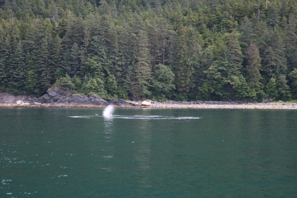 We got off our ship and headed on a bus to Auk Bay, about 20 km from the port, for whale watching. We were ushered into a boat captained by Emily. John, a university student pursuing his pre-medical degree was her assistant. Both Emily and John were very knowledgeable about Auk Bay and surrounding areas and also about whales. We were a group of 12 in the boat and after everyone boarded, Captain Emily gave out safety briefing followed by a talk about what we were expecting to see. After leaving the jetty, Emily went full throttle, skimming over the water to locate the whales. During this journey John gave a detailed briefing on whales.