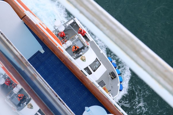 After we passed Gloomy Knob, a boat belonging to US National Park Services came alongside our ship.  Rangers from the boat boarded our ship through a rope-ladders provided by the ship’s crew.
