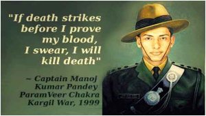 Lieutenant Manoj Kumar Pandey, thus, displayed most conspicuous bravery, indomitable courage, outstanding leadership and devotion to duty and made the supreme sacrifice in the highest traditions of the Indian Army.”