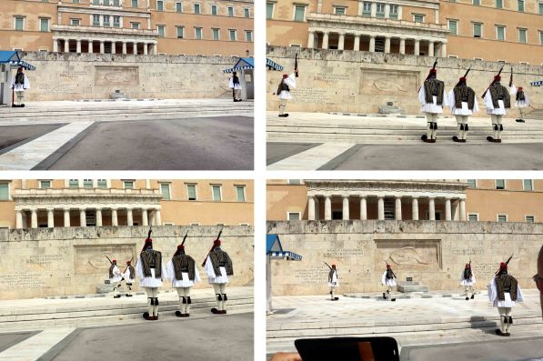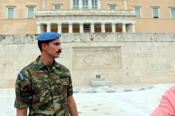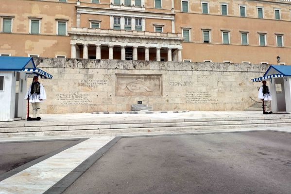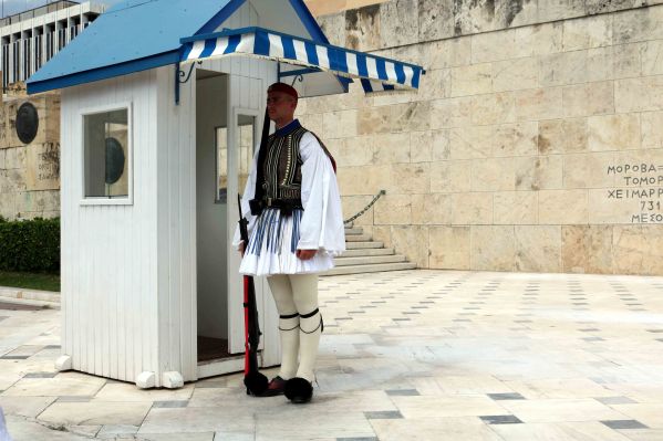 The Tomb is guarded by the Evzones, a special unit of the Hellenic Army, also known as Tsoliades. A pair of soldiers guard for one hour and throughout these 60 minutes, they stand perfectly still until it is time to switch with another guard