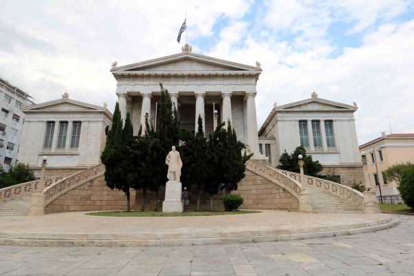 To the left of the steps leading to the building stands a statue of John Capodistrias, who founded the University after declaration of Greek independance in 1821.   On to the right is the statue of Alexander Korais, a Greek scholar credited with laying the foundations of Modern Greek literature and a major figure in Greek Enlightenment.