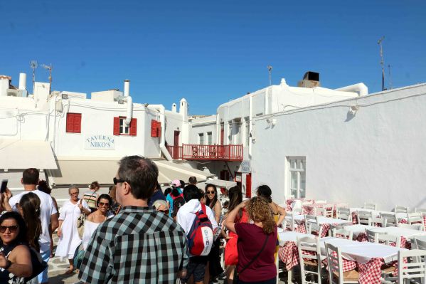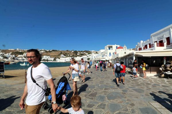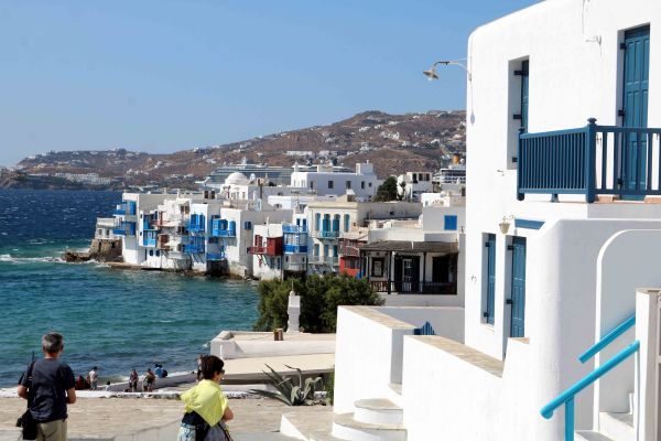 From the area of the windmills, narrow and endless cobblestone paved alleys lead us to Little Venice. It is a charming little area looking into the sea. Buildings with balconies that overhang the water and the windmills in the background make this area the subject of many paintings and is a photographers dream.