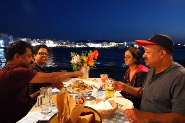 We returned to Little Venice in the evening, well before sunset to take up our reserved seats at the restaurant at the brim of the sea. The area was thronging with tourists as everyone comes here in the evening, to watch the magnificent sunset. As the sun goes down, the sky shows off some brilliant colours of red, orange and pink. The reflection on the water is awesome. The expression “picture perfect postcard” some how seemed be so very apt. At sunset, we watched a profusion of colours ever so slowly leak out of the Aegean sky, enjoyed a sumptuous Mediterranean dinner, mainly of seafood and Greek salad and then returned to our hotel, quite exhausted and a lot more contended.