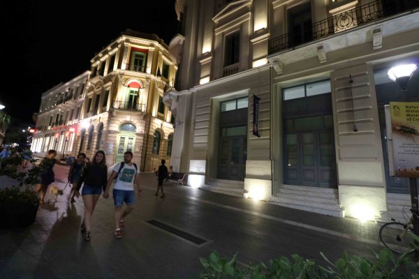 As the night set in, we walked from our hotel to the 25th August Street. It is now a paved pedestrian street, and boasts the most beautiful Neoclassical buildings that house banks, travel agencies and tourist shops. This street may have been first cut by the Arabs in the 9th or 10th century, the main thoroughfare of Heraklion, linking the town centre to the harbour. During the Venetian period it was called the Ruga Maistra (Main Street), while in Ottoman times it was known as Vezir Tsarsi (Vizir’s Market) after the Vezir Mosque. The modern name of the street relates to a tragic event. On the 25th of August 1898, during the feast of St Titus, fanatic Muslim mob slaughtered many Christians, including 17 British soldiers and the British Consul.