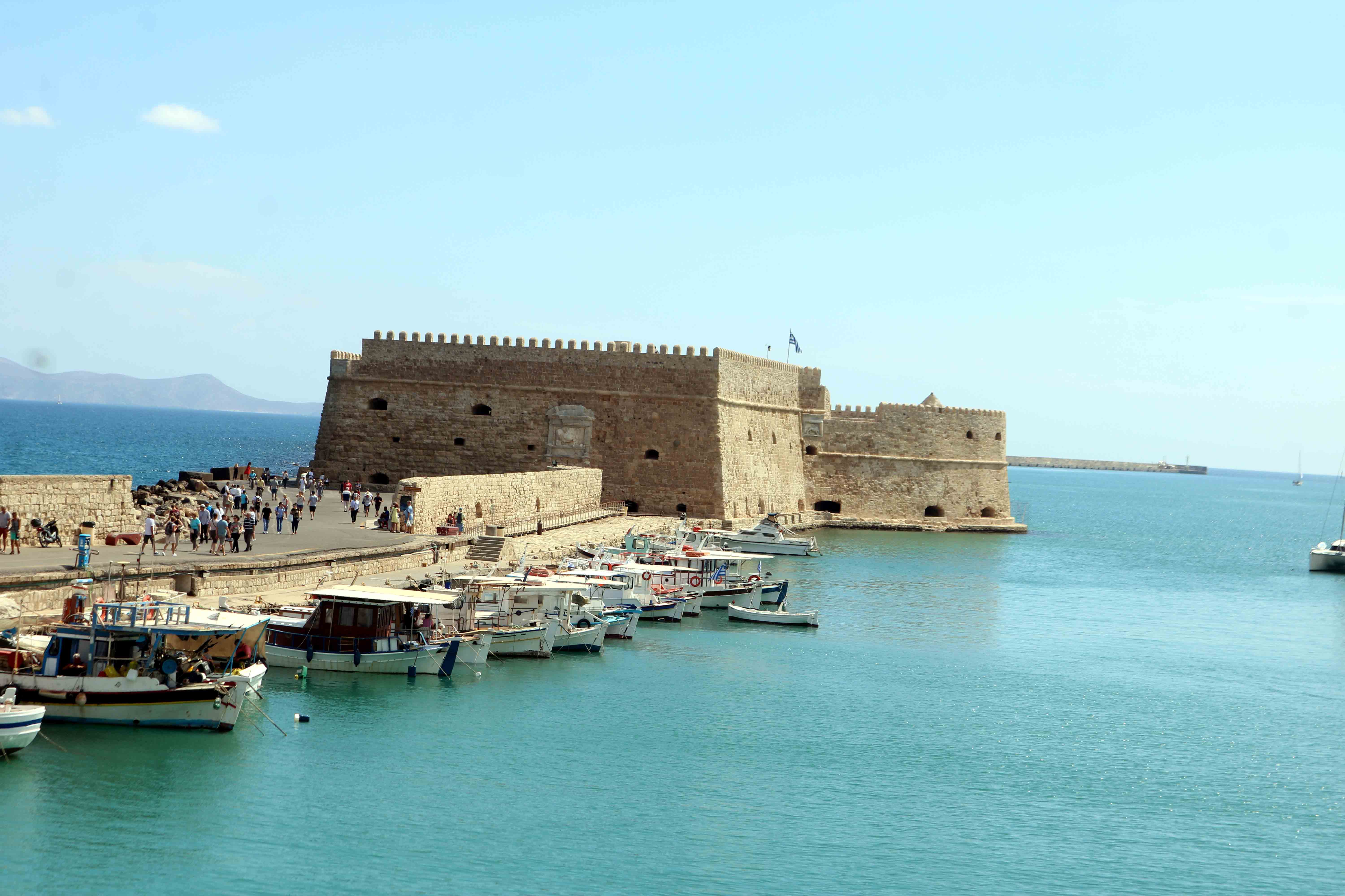 Down the street is the Loggia (noblemen’s club), constructed in 1626-28 AD by Francesco Morosini, the same man who built the Lions Fountain. This is the fourth and final Loggia built during the period of Venetian rule. Very little information is available on the first three. Venetian political and social customs demanded the construction of a public building in Heraklion, as a meeting-place for the nobles, rulers and feudal lords, where economic and commercial decisions were made. It was also a place for them to relax. The building is a faithful reproduction of Palladio’s famous Basilica in Vincenza, demonstrating the significance the Venetians attached to the city of Heraklion. . Today the Loggia has been restored to its former glory and houses the Town Hall.