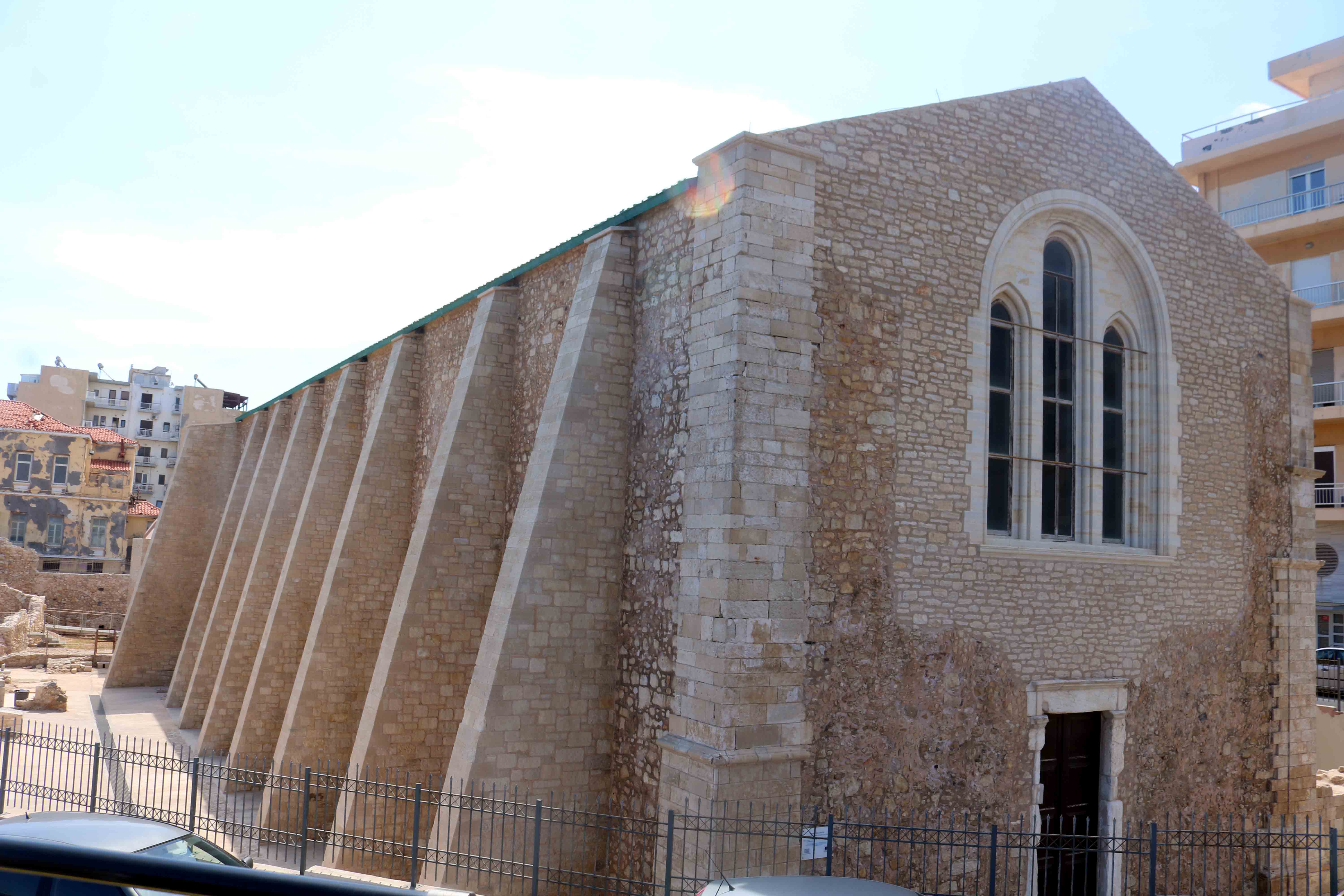Opposite the Lions Square is one of the first and most important works of the Venetian settlers, the St Mark Church. Next to the church on the South-West corner was a high bell tower with a clock. During the long Turkish siege of the city, the bell was used as a bomb alarm, resulting in the bell tower becoming the target of the Turkish cannons. When the Turks took over the city, the church was converted into a mosque. The bell tower was demolished and in its place they built a minaret. Restoration of the building commenced in 1956 and today it houses the Municipal Art Gallery.
