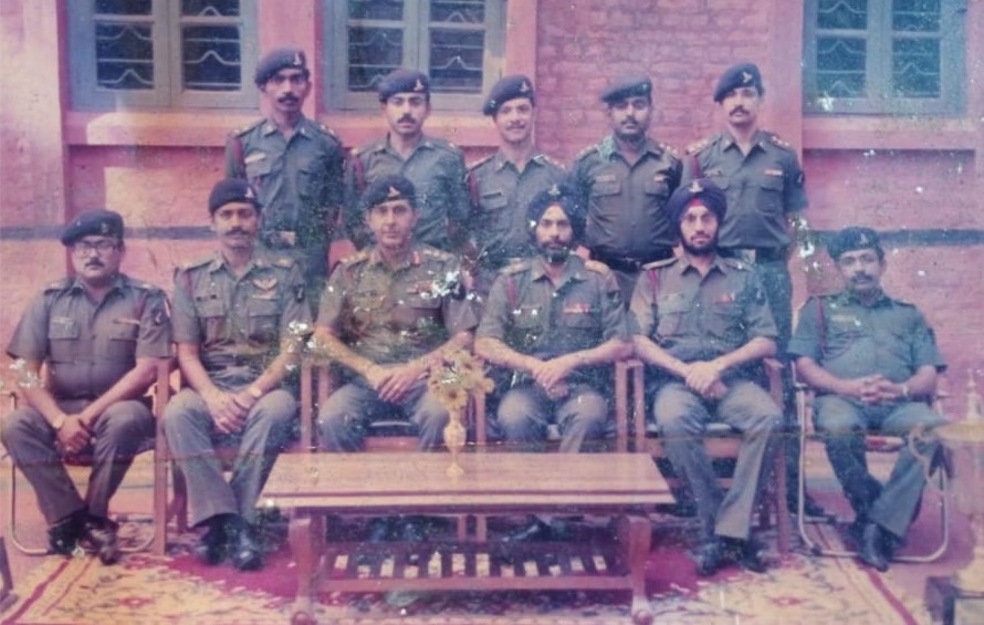 (Regimental Photograph of 1990 with Colonel Rajan Anand, Commanding Officer. Captain KM Mistry standing in the centre and I seated extreme right.)