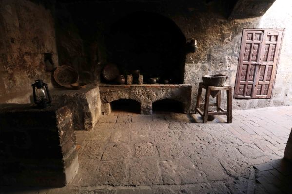 Apart from daily prayer and meals, the nuns took time to bake (mostly bread) which was then either eaten communally or sold to the public. This photograph depicts what was once their kitchen with a stone water filter on the Right.