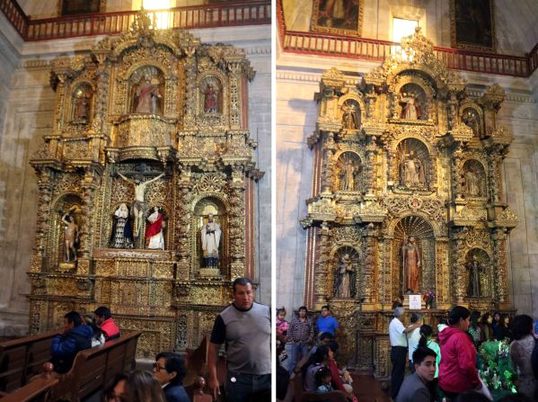 Our next stop was Jesuit Church of Company, located on the South-East corner of the Square. Its facade is an intricately carved masterpiece in ashlars. The design of the church is Spanish, but the carvings in these stones are filled with relief and the motifs which are mostly Incan. Construction of this church commenced in 1578, but was destroyed many times over due to various earthquakes.