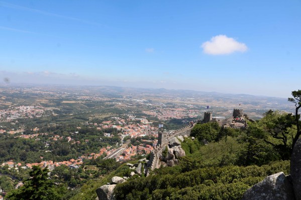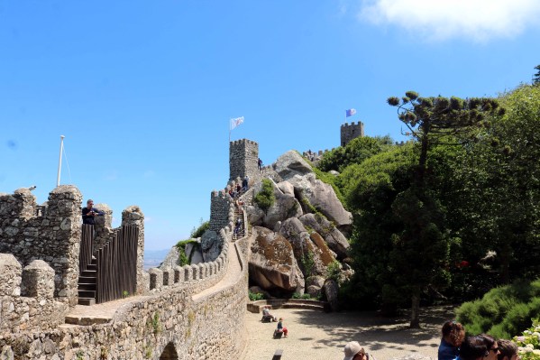 Moors Castle is located atop the hills of the Serra de Sintra and is a very challenging up-hill hike to reach its top. It is a classic ruined castle with high fortified stone walls, treacherous ramparts and massive battlements.