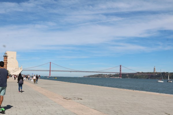 The fifty meter tall monument, shaped like a ship’s bow, stands where in 1493 a storm forced Christopher Columbus to anchor here on his way back to Spain after his discovery of the Americas and in1497 Vasco da Gama embarked on his voyage to India. The monument has thirty-three statues of people who played an important role in the Portuguese Age of Discovery. Each statue is designed to show movement towards the front (the unknown sea), projecting a direct or indirect synthesis of their participation in the events after Henry the Navigator.