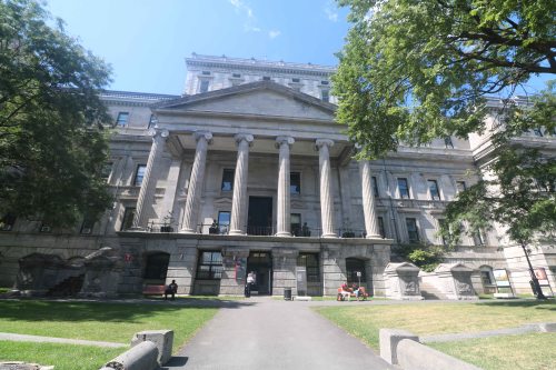 Opposite to the court houses stood the Ernest-Cormier Building of 1926, from where once the Criminal Court operated. The building features monumental granite, limestone and an imposing portico of 14 columns. The building now houses the Quebec Court of Appeal.