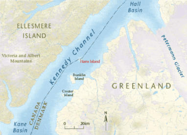 Denmark and Canada share maritime boundary in the Arctic and it runs in the middle of Nares strait through which runs Kennedy Channel. This 35 km wide strait separates Ellesmere Island from northern Greenland. The strait is home to two islands – Franklin and Crozier – which falls within the territorial waters of Denmark