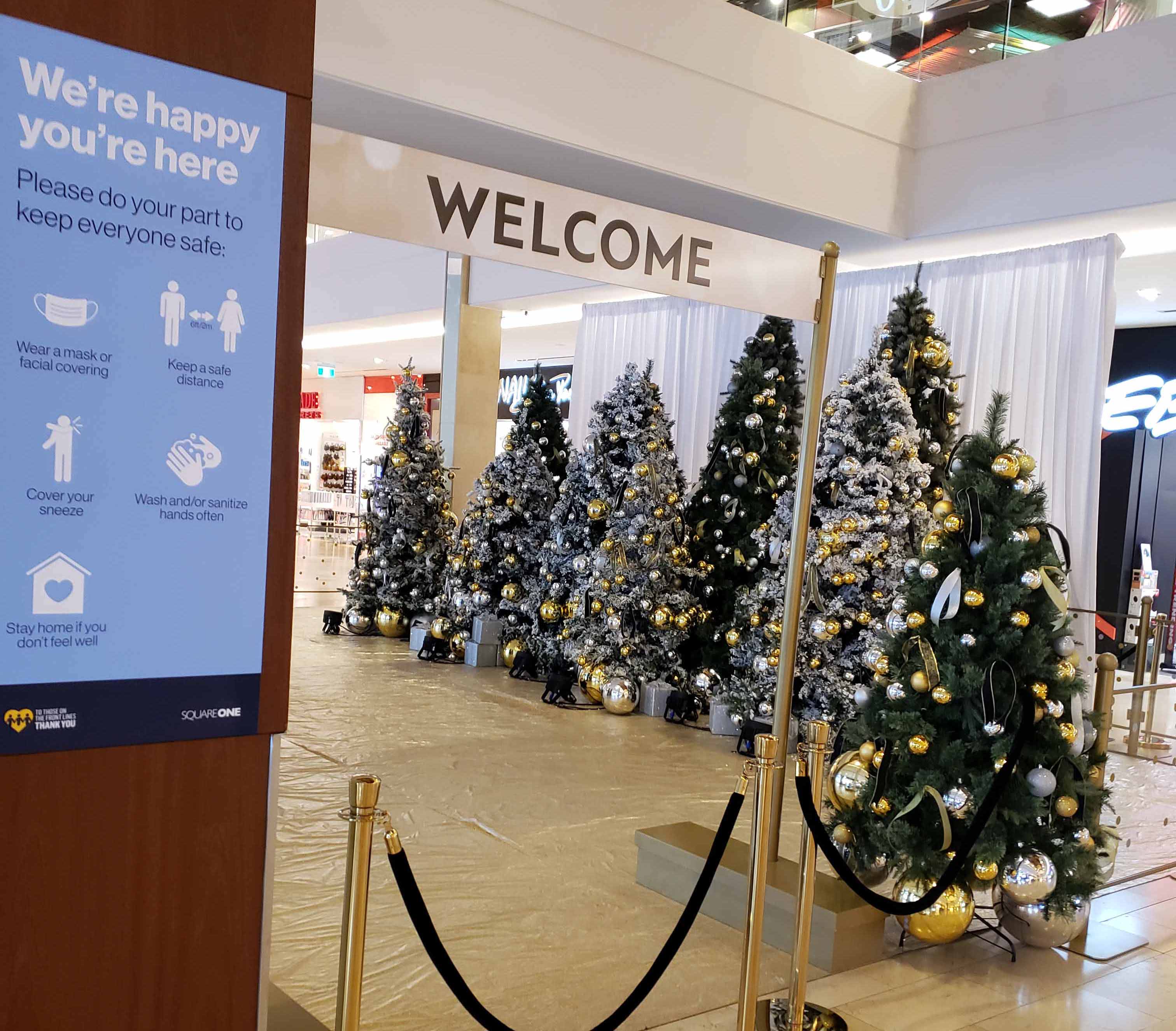 Creative ideas with Christmas colors in the mall? Mall is located in old Mississauga now popularly known as Mu—– saga. where the Ribfest was cancelled.