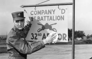 When Elvis Presley turned 18 on January 8, 1953, he fulfilled his patriotic duty and legal obligation by registering for the US Army draft. At that time, he was a rock and roll music sensation. Though the US Army offered Presley an option to enlist in Special Services to entertain the troops, he decided to serve as a regular soldier. This earned him the respect of his fellow soldiers and countrymen. Thus, Presley became US Army Serial Number 53310761 and after his basic training was assigned to D Company of the Third Armored Division’s 1st Medium Tank Battalion. This took him to Germany on October 1, 1958, and he served with the Regiment until March 2, 1960. On January 20, 1960, Presley was promoted to the rank of Sergeant.