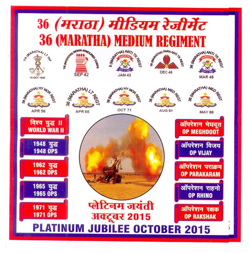 36 (M) Medium, well known among the Gunner fraternity as Chathis, meaning 36, is also known for most conversions an Indian Regiment has ever been through.  The Regiment was raised as 7/5 Maratha Light Infantry at Faizabad on October 10, 1940, by Lt Col AL Collingwood.