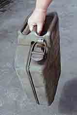 The Allied forces used containers nicknamed flimsies. It was made of light-gauge sheet metal pieces poorly welded together. They were a hassle to carry and ruptured quite easily. The flimsies required a wrench to open, a spout to pour and a funnel to receive the liquid.