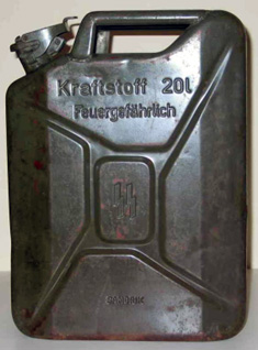 Vinzenz Grünvogel, chief engineer with the firm Müller of Schwelm, is credited with devising the winning can. This simple looking can has more to the design than meets the eye. Developed under the utmost secrecy, the jerrycan featured flat sides that were rectangular in shape and was made in two halves that were welded together like an automobile fuel tank.