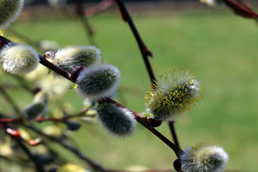 Hyacinths and Daffodils are the flowers that bloom in our garden after the Weeping Pussy Willow.