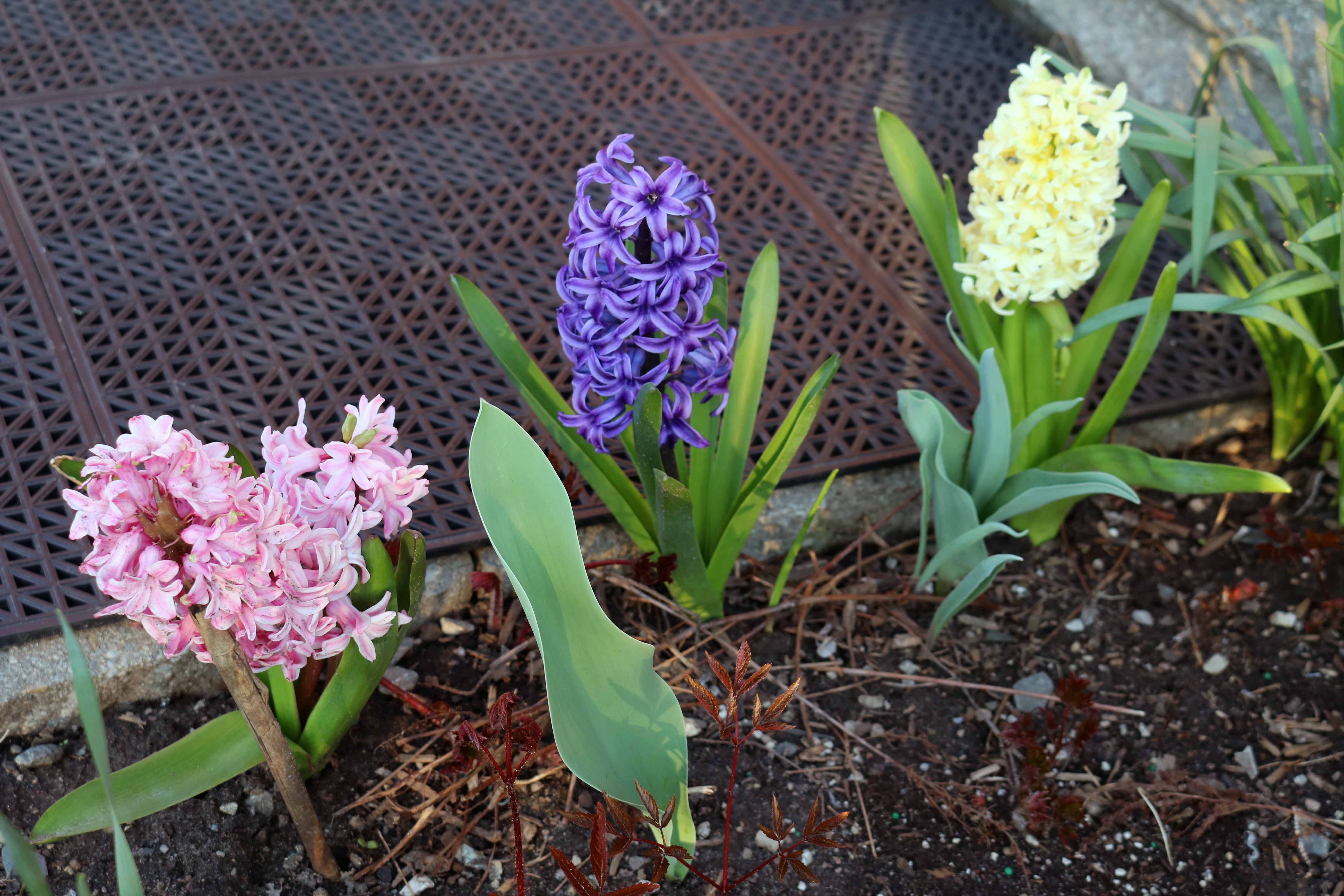 Hyacinths and Daffodils, like Tulips are planted in early Autumn so that they have enough time to grow solid roots before the winter frost sets in.