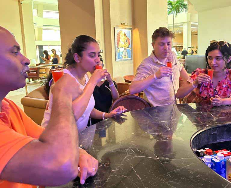 Staying well hydrated, especially after too many alcoholic beverages under the hot Mexican sun, is very important. The methodology I adopted was to go in for non-alcoholic drinks and mocktails during the day.