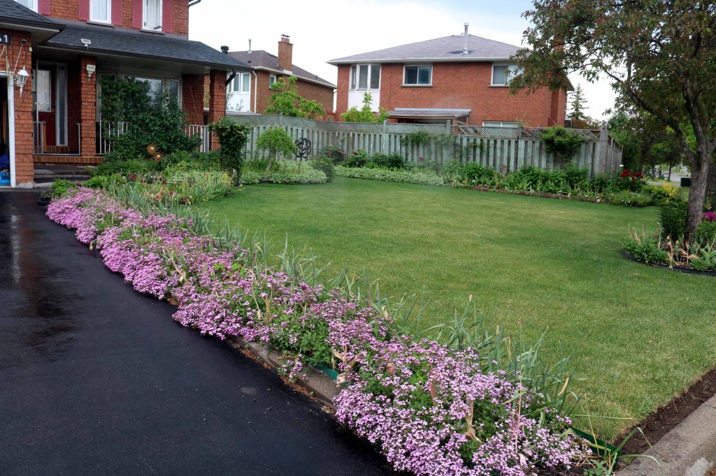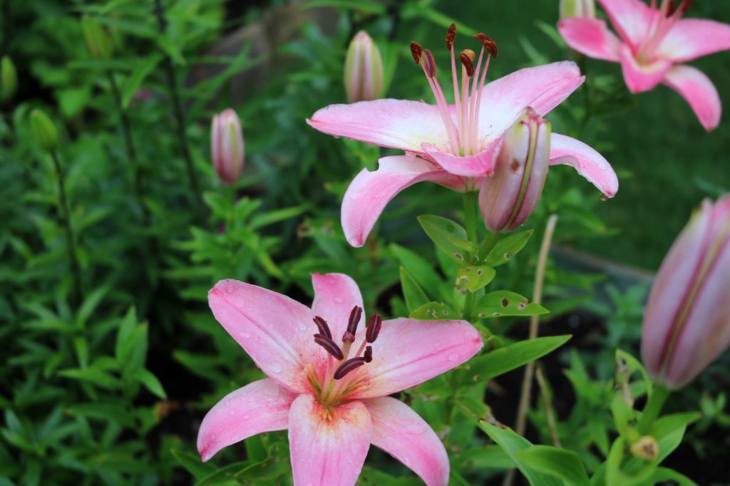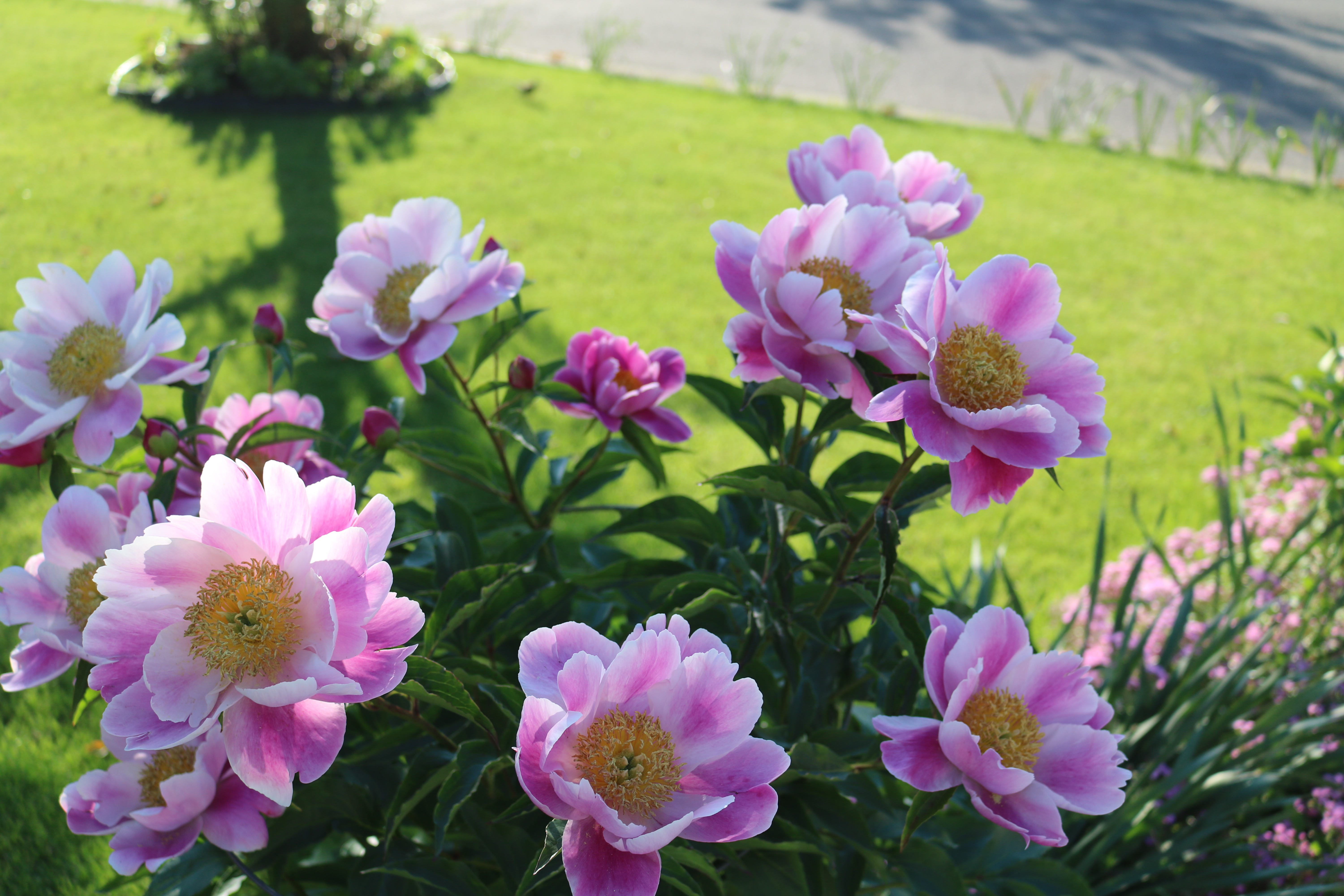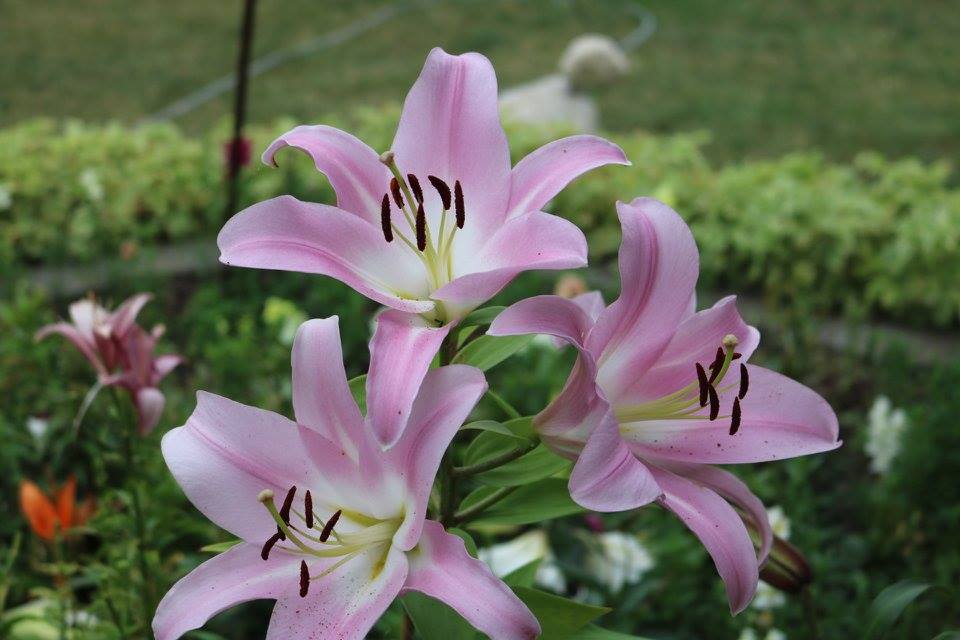 June marks the end of the Tulip season in our garden and is the month of Pinks. The pink colour stands out on the lush green background of the lawn.