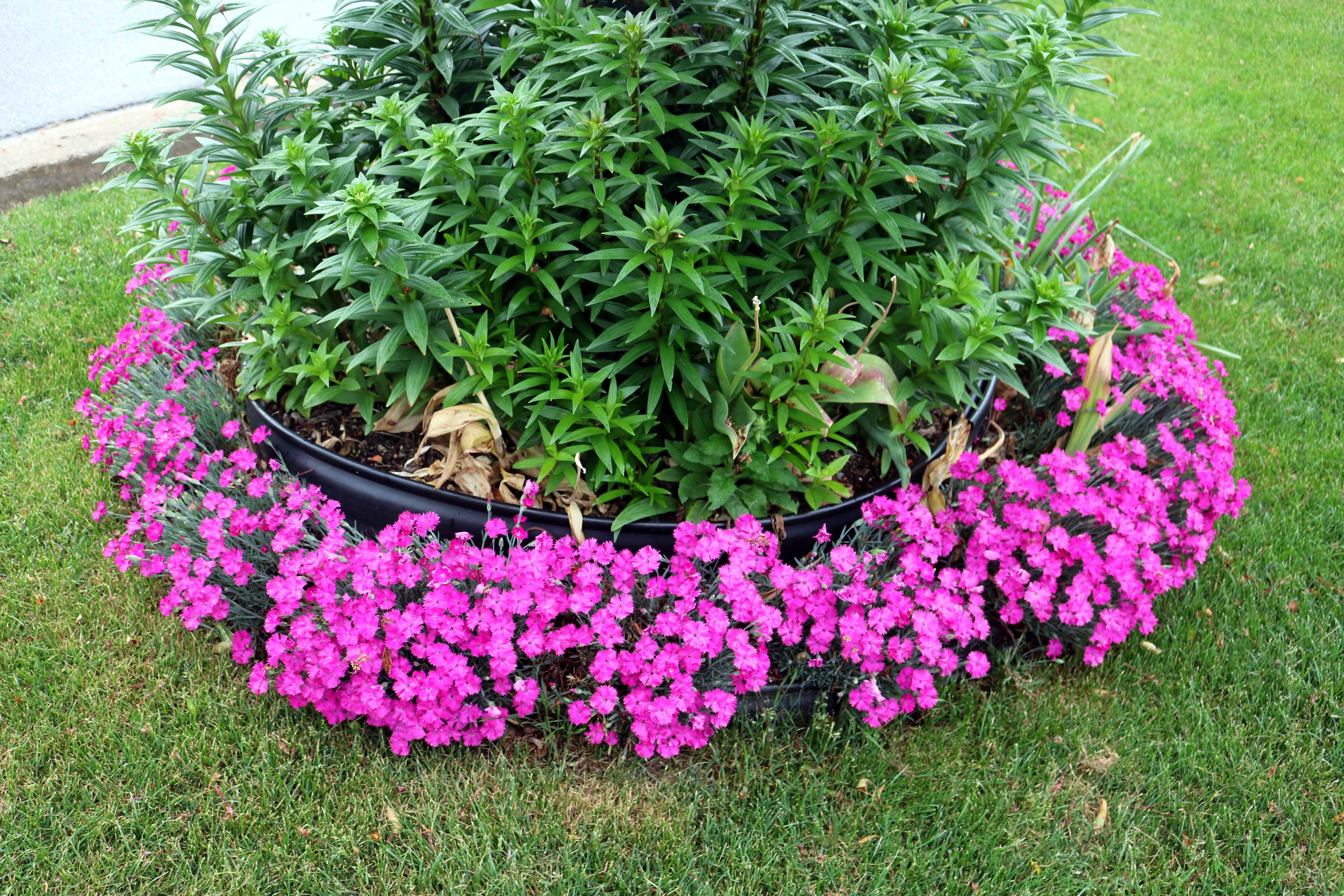 Neon Star- characterised by their fragrant fluorescent pink blooms, used as edging plants in our garden. The vibrant pink flowers cover the evergreen, blue-grey foliage.