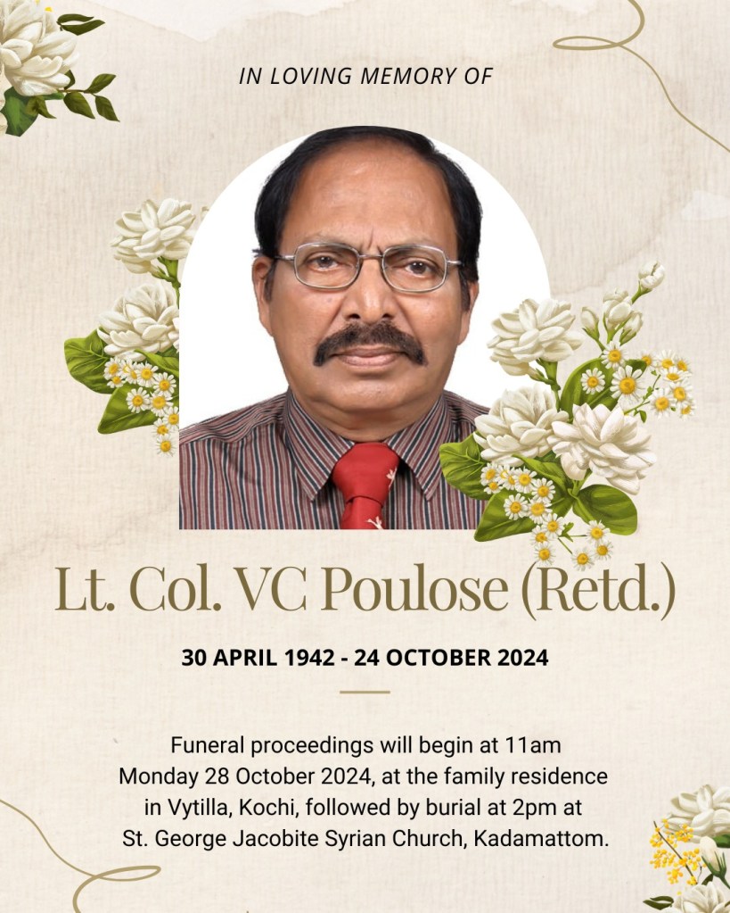 During the annual audit of the Northern Command Postal Unit in 1990, the Adjutant was Major VC Poulose and that is where I met him. From his name, I could make out that he was a Mallu. I went through the audit as objective as possible and had a few questions for Major Poulose.