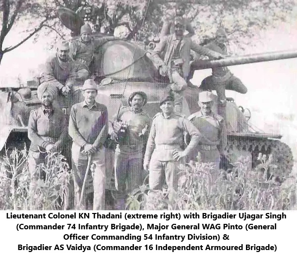 Lieutenant Colonel KN Thadani served as the Artillery Advisor to Brigadier AS Vaidya, Maha Vir Chakra (who later rose to become General and Chief of the Army Staff), Commander of the 16 Independent Armoured Brigade. In this pivotal role, he demonstrated exceptional professional acumen in planning and executing artillery fire support during critical operations. His strategic foresight, coupled with unwavering courage and exemplary leadership under fire, proved instrumental to the brigade’s success. For his distinguished contributions, Lieutenant Colonel KN Thadani was awarded the Visishta Seva Medal – a recognition of his invaluable service and the high esteem in which he was held by his commanders.