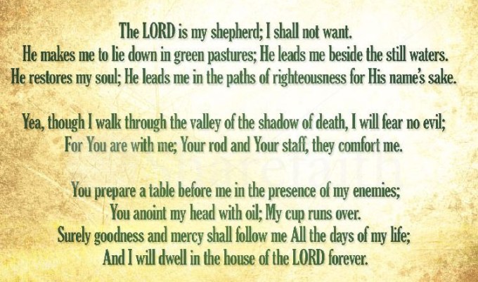It was a ritual in our home that everyone recited the Twenty-third Psalm at the end of the evening prayer and the same was recited at our church at the end of the Holy Mass. This Psalm is applicable to one and all, irrespective of one’s religion and it reaffirms one’s faith in their God. The Twenty-third Psalm begins with “The Lord is my shepherd; I shall not want”. In the Malayalam version which we recited as children, the “I shall not want” part was translated as “എനിക്കു മുട്ടുണ്ടാകുകയില്ല” (enikku muttundakukayilla), and I always looked at my knees after reciting it, as it literarily translated in any child’s mind as “I will not have my knees”.