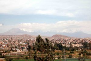 Arequipa is named the “White City” (Ciudad Blanca) due to the whiteness of the houses and buildings made using white ashlar, a volcanic stone abundantly found in the area. In the background of the photograph above is the Misti Volcano on the Left and Pichu Pichu Volcano (5,669m) to the Right.