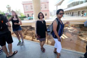 We dined at a restaurant next to the Lions Square. The Menu was Greek Mussaka – Oven baked Greek dish with layers of eggplant, zucchini, potato and minced meat; Shrimps Saganaki – shrimps with white Feta cheese cooked in spicy tomato sauce; slowly cooked goat with citrus fruits served with sautéed Cretan greens, carrot jello, Greek yogurt and tahini (a paste made from ground sesame seeds.)