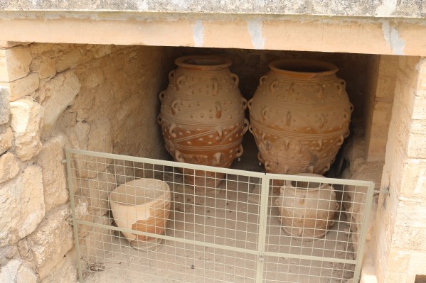 Crete has one of the oldest and perhaps the most delicious gastronomic traditions in the world with Cretan olive oil as one of the basic ingredients of Cretan cuisine. Archaeological excavations indicate that the ancient Cretans used to consume almost the same products as the contemporary islanders. Large jars for storing olive oil, cereals, pulses and honey we saw at Knossos palace possibly stand testimony to this tradition. This storage habit would have helped them to survive many sieges the island experienced, mainly by the Arabs, the Venetians and the Ottomans.