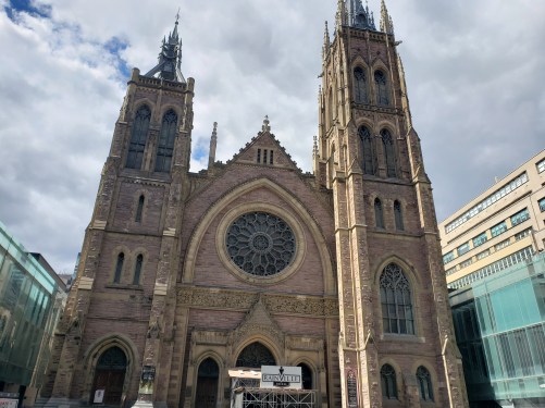 We then drove to St James United Church on Sainte-Catherine Street. It is one of the city’s religious heritage gems built in 1889 by Methodist Loyalists who left New York City in the late 1700s. The church is characterised by its spectacular stained-glass rose window, massive towers, gargoyles and High Victorian Gothic Revival architecture.